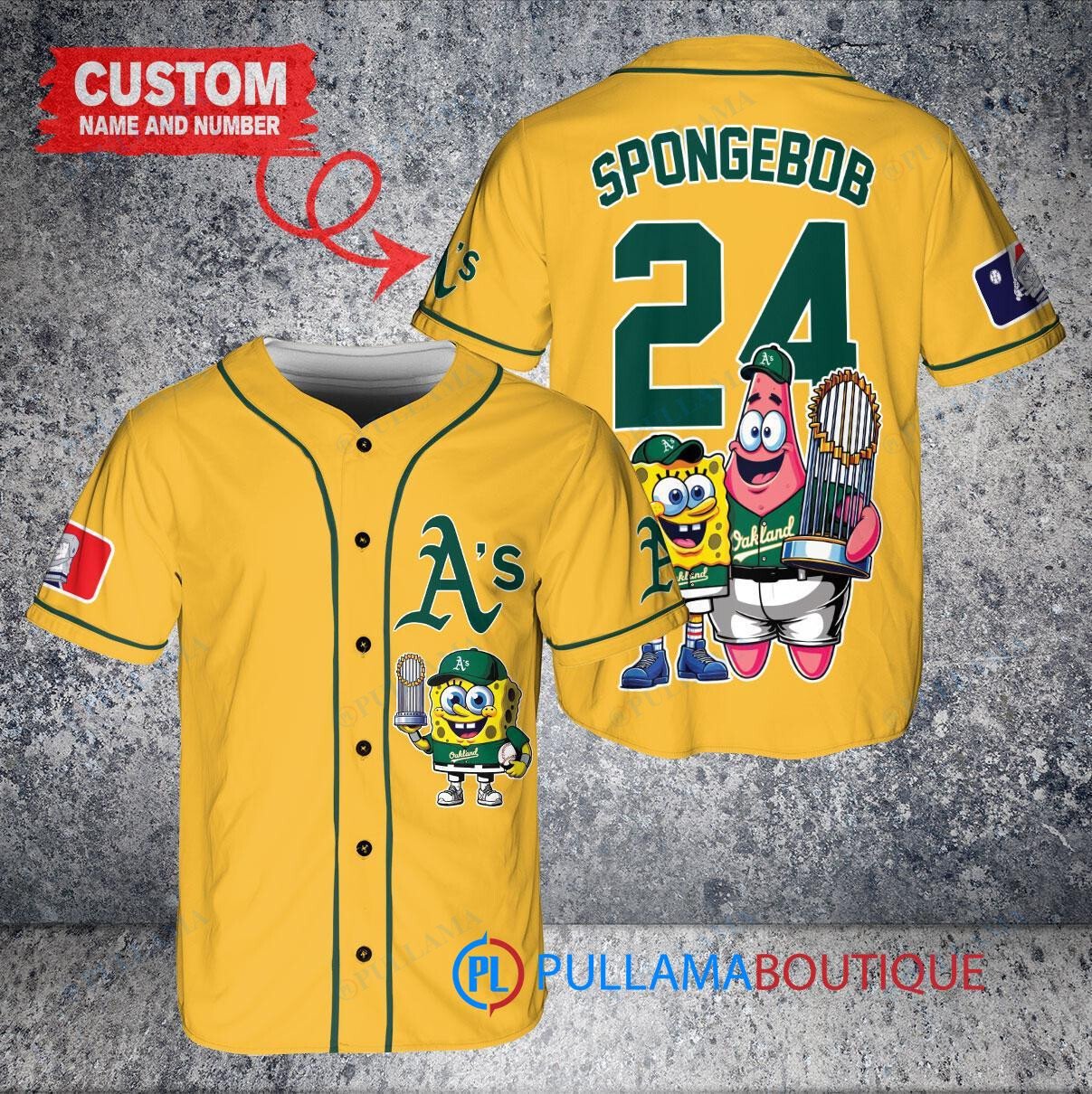 Oakland Athletics x SpongeBob SquarePants with Trophy Custom Baseball Jersey Gold