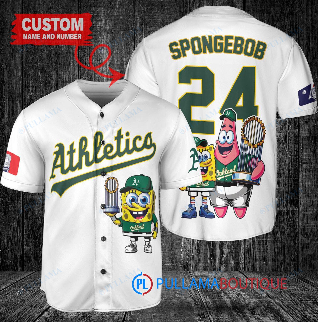 Oakland Athletics x SpongeBob SquarePants with Trophy Custom Baseball Jersey White