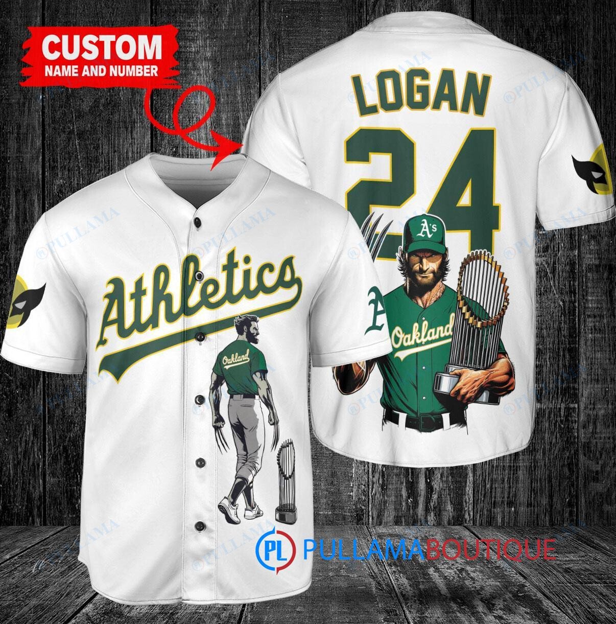 Show off your Oakland Athletics pride with this custom baseball jersey featuring Wolverine Logan holding a trophy. This white jersey is perfect for any fan looking to stand out in the crowd. Made with high-quality materials, this jersey is comfortable to wear while cheering on your favorite team. Get yours today and show your support in style!