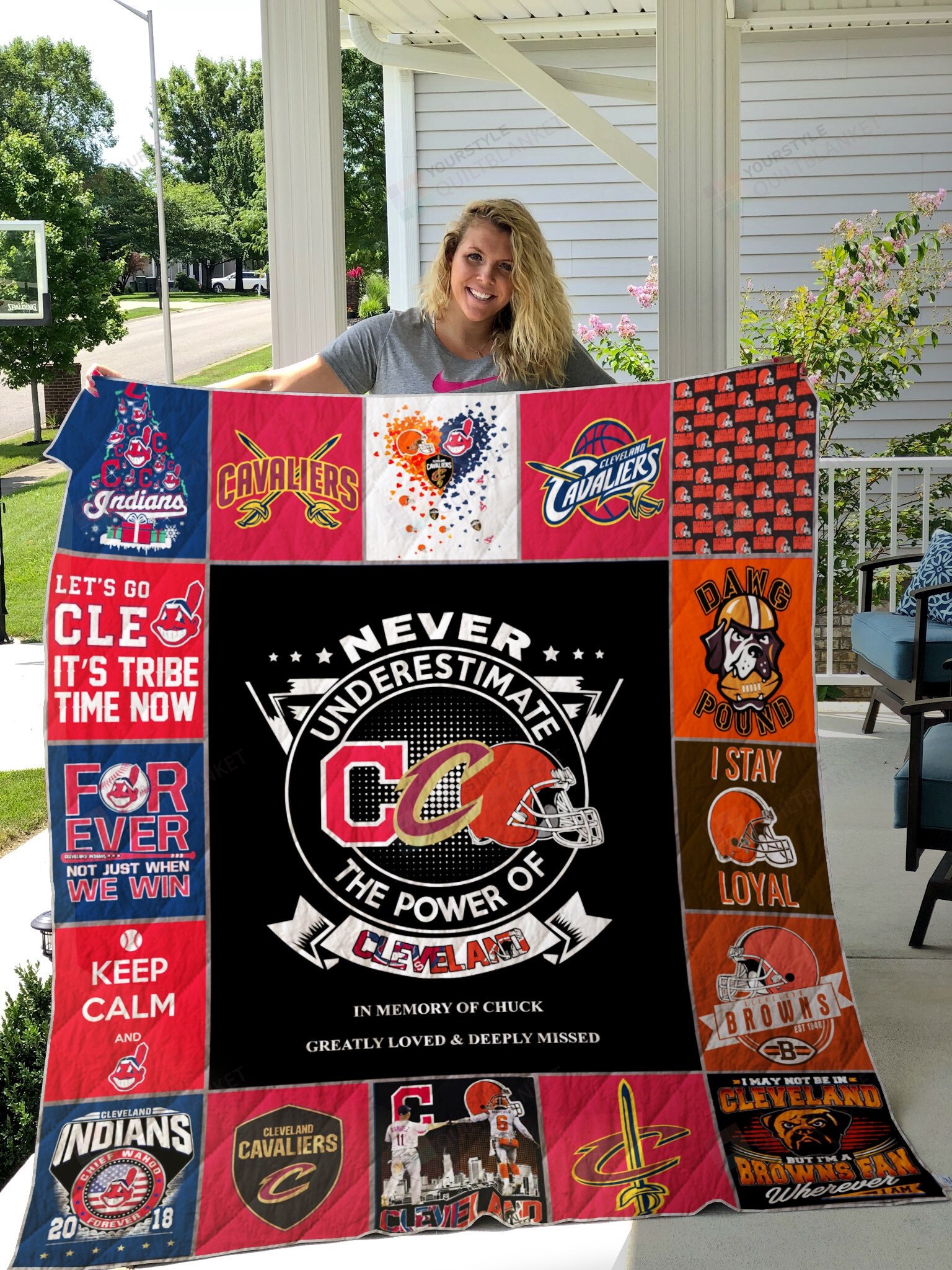 Personalized Never Understimate The Power Of Cleveland, Cleveland Indians, Cleveland Cavaliers And Cleveland Browns Quilt Blanket