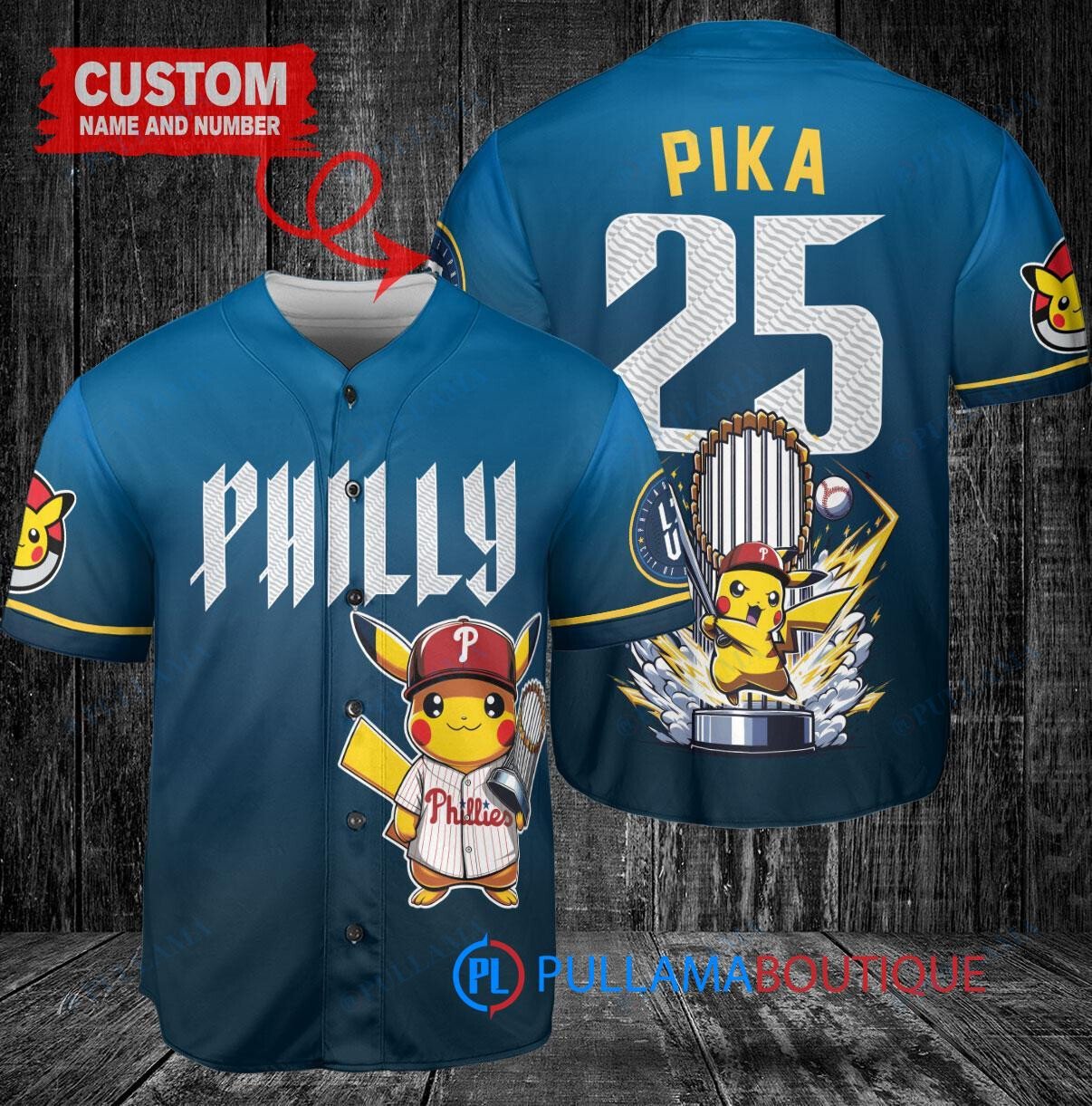 Philadelphia Phillies x Pikachu Pokemon with Trophy Custom Baseball Jersey Blue City Connect