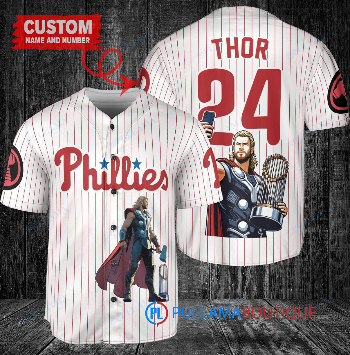Philadelphia Phillies x Thor Marvel with Trophy Custom Baseball Jersey White