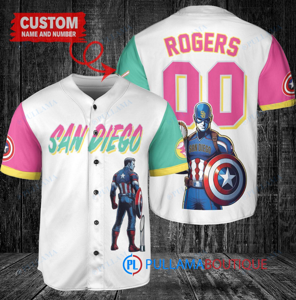 San Diego Padres x Marvel Captain America Steve Rogers Baseball Jersey White