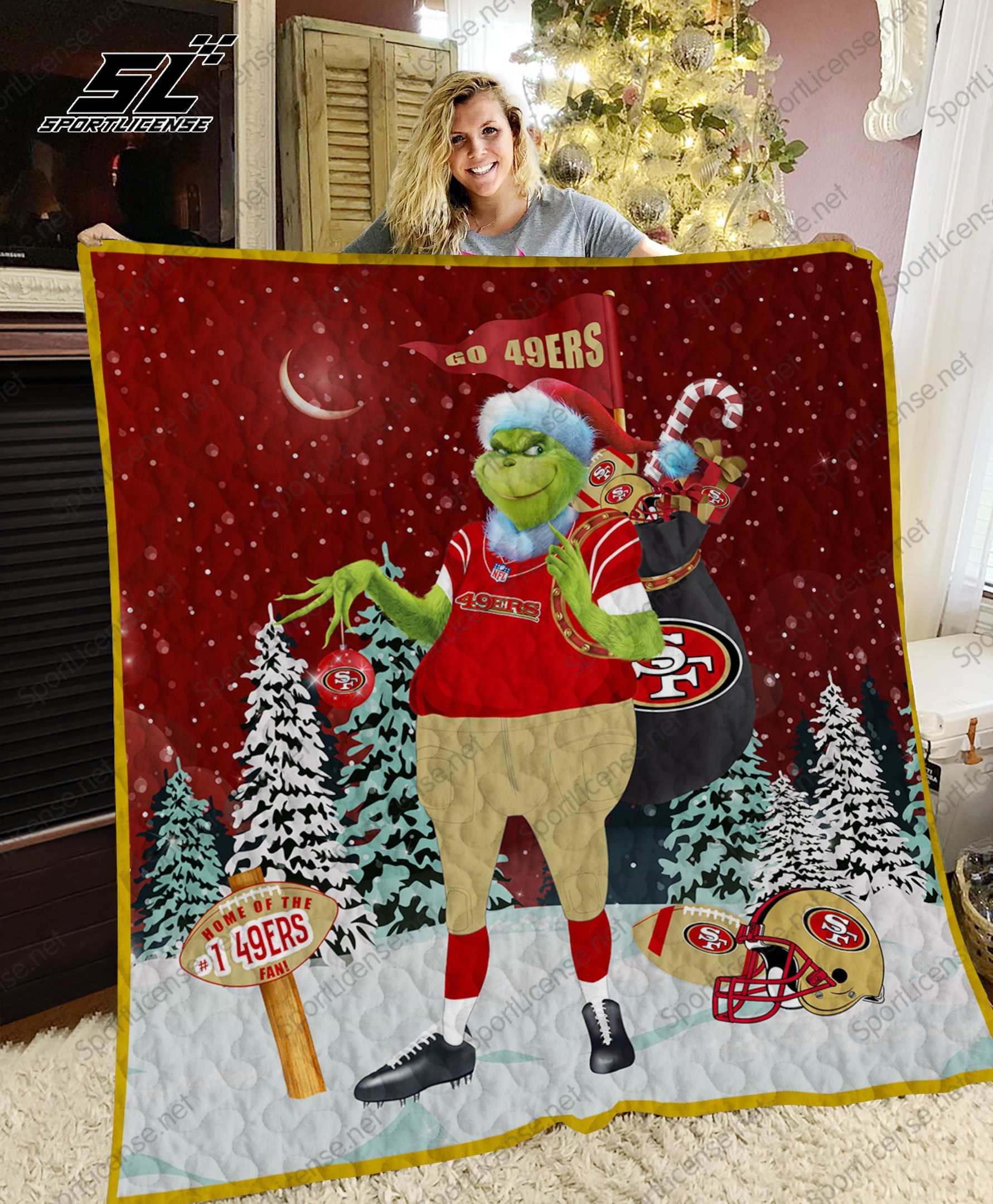 San Francisco 49ers Grinch Santa Quilt Blanket