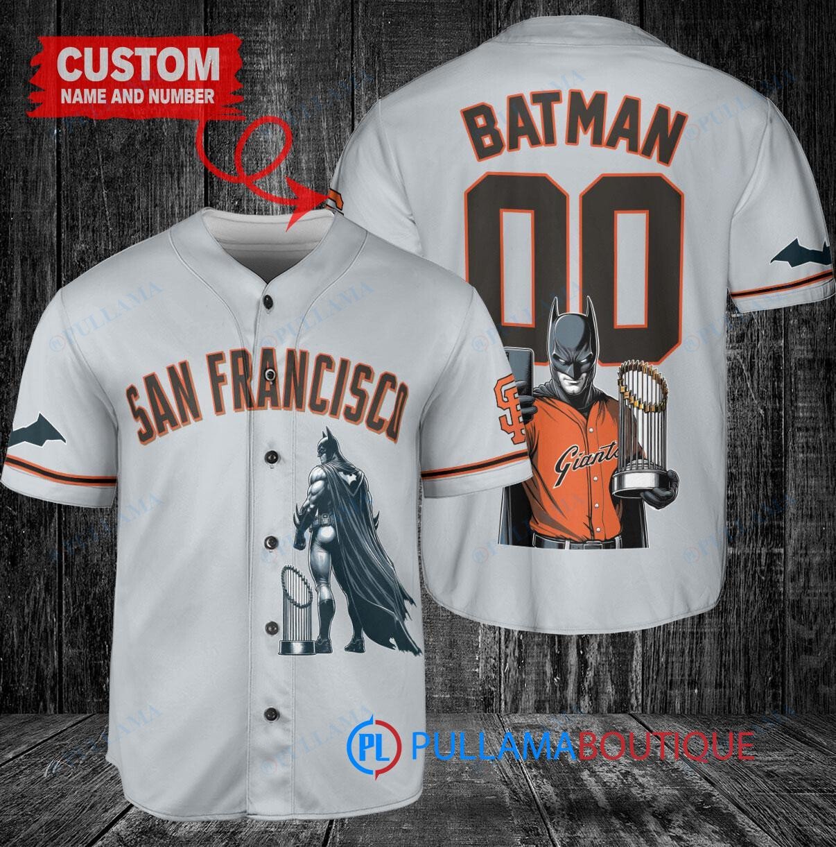 San Francisco Giants x DC Comics Batman The Dark Knight with Trophy Custom Baseball Jersey Gray