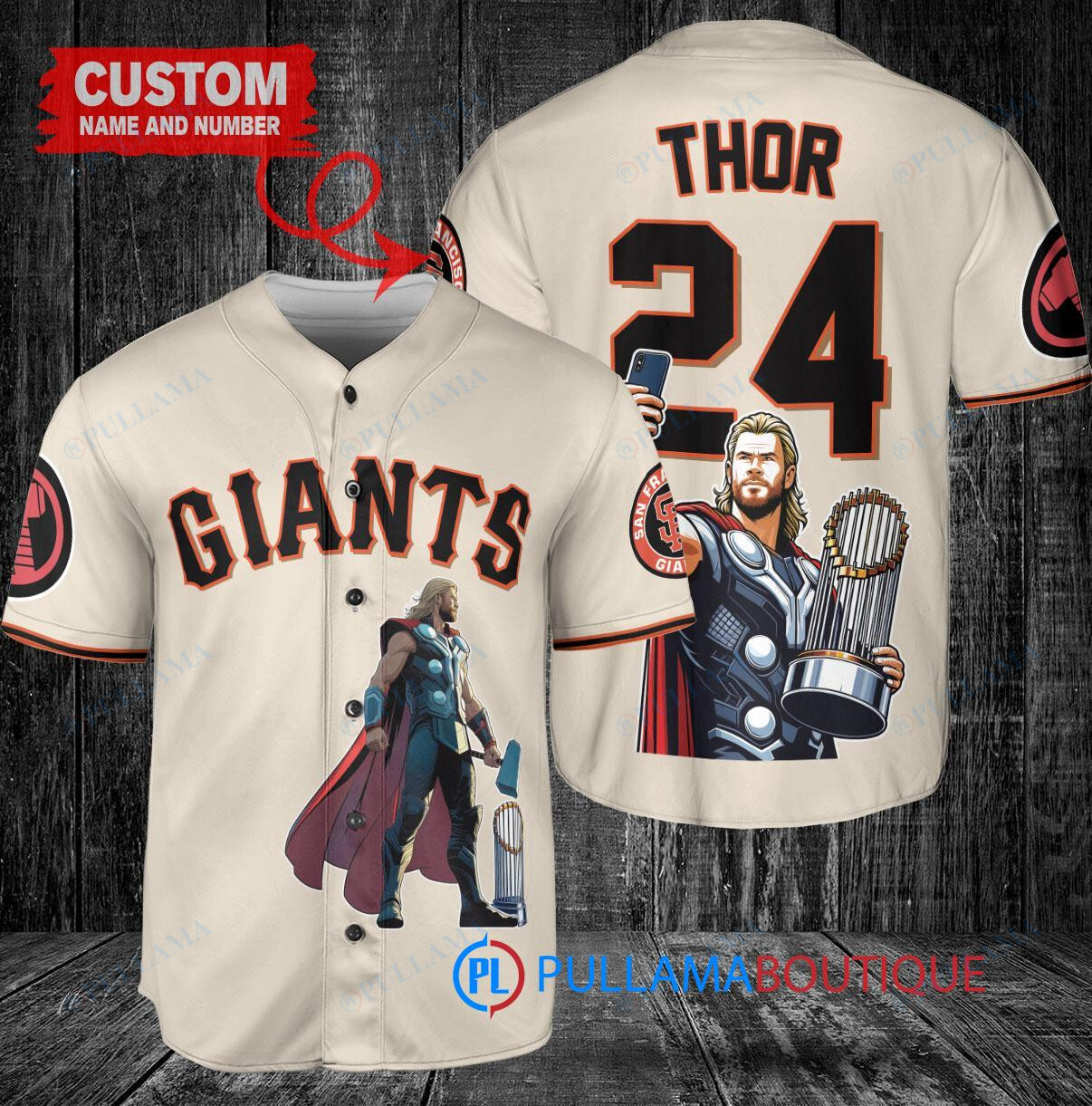 San Francisco Giants x Thor Marvel with Trophy Custom Baseball Jersey Cream