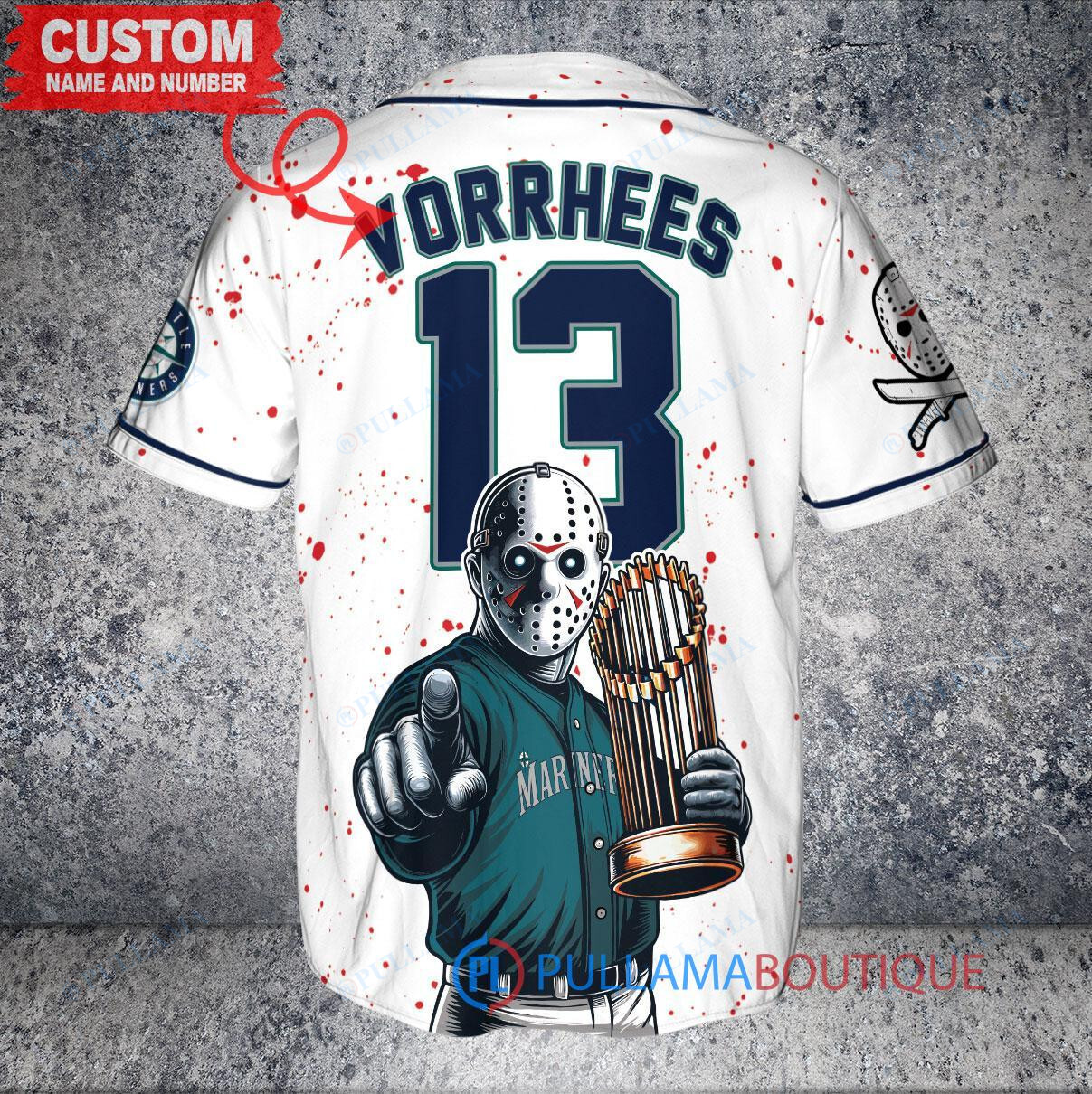 Seattle Mariners Jason Voorhees Halloween World Series Trophy Baseball Jersey V2