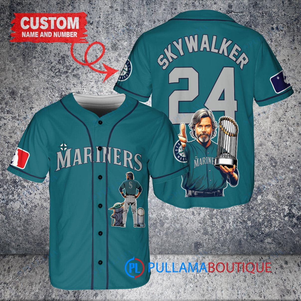 Seattle Mariners x Luke Skywalker Star Wars with Trophy Custom Baseball Jersey Aqua