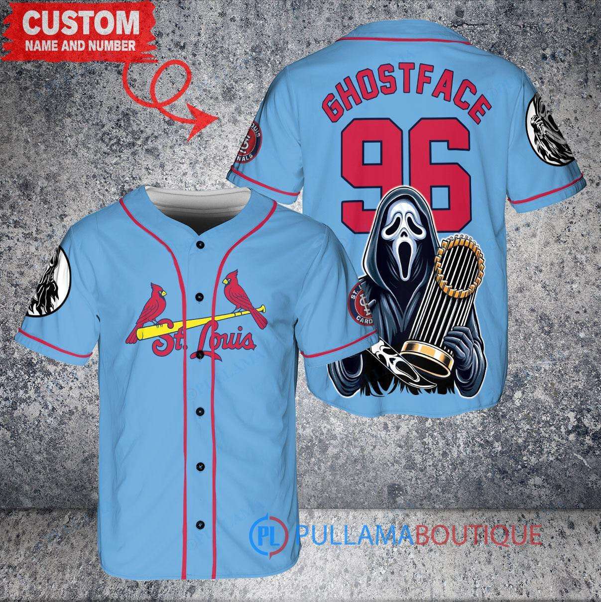 St. Louis Cardinals Ghostface Scream Halloween World Series Trophy Baseball Jersey Blue