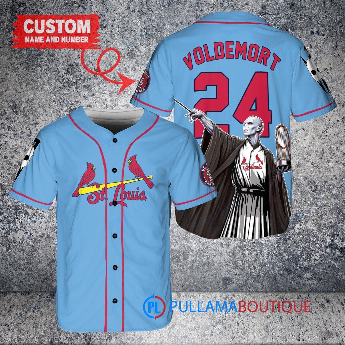 St. Louis Cardinals x Lord Voldemort Baseball Jersey – Light Blue Trophy