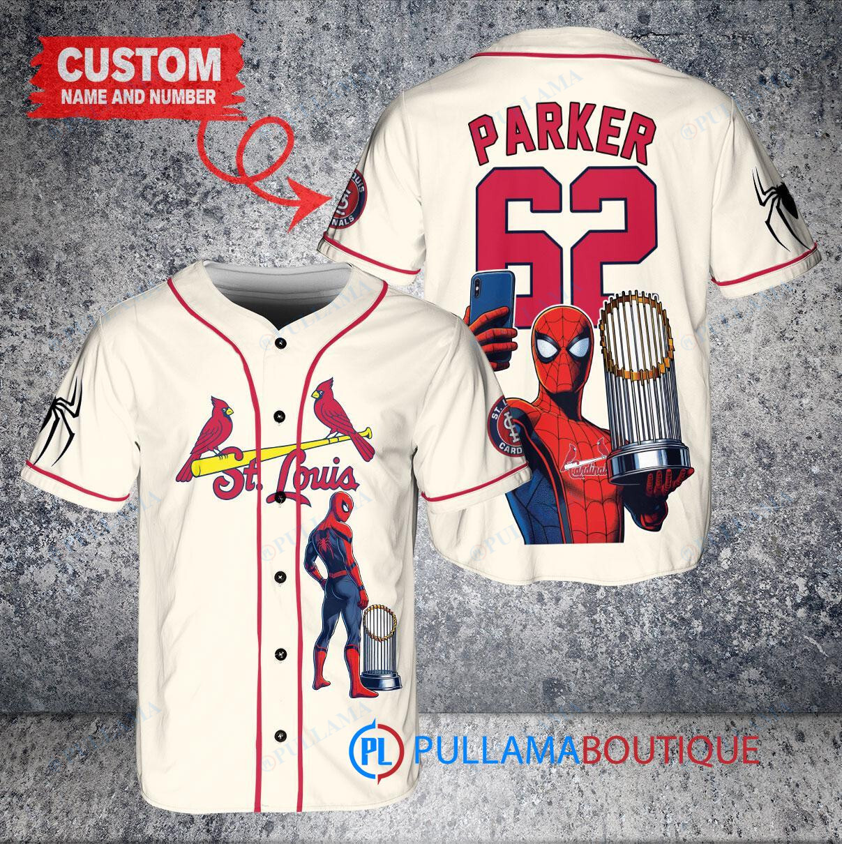 St. Louis Cardinals x Marvel Spiderman with Trophy Custom Baseball Jersey Cream
