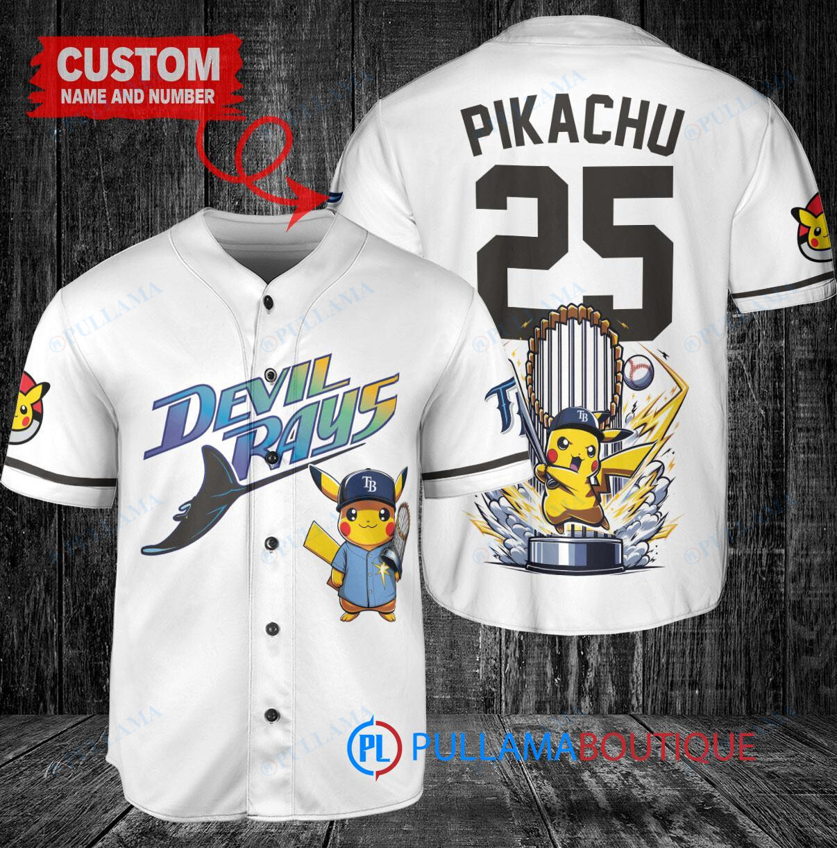Tampa Bay Rays x Pikachu Pokemon with Trophy Custom Baseball Jersey White Home Replica