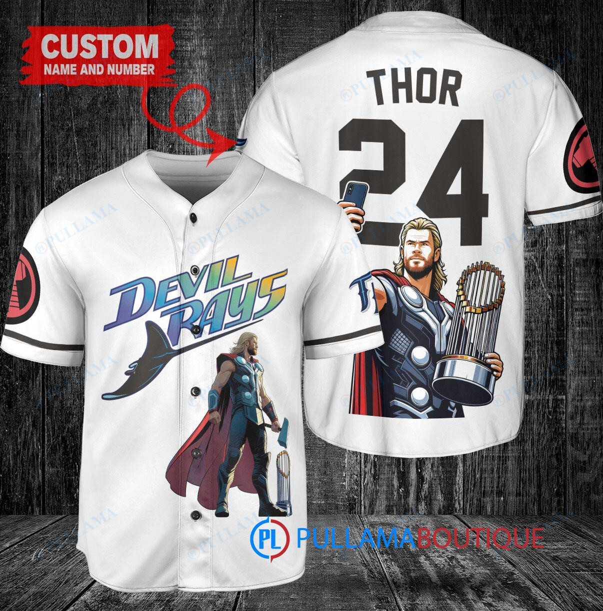 Tampa Bay Rays x Thor Marvel with Trophy Custom Baseball Jersey White Home Replica