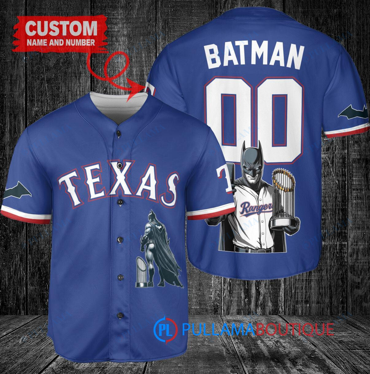 Texas Rangers x DC Comics Batman The Dark Knight with Trophy Custom Baseball Jersey Royal