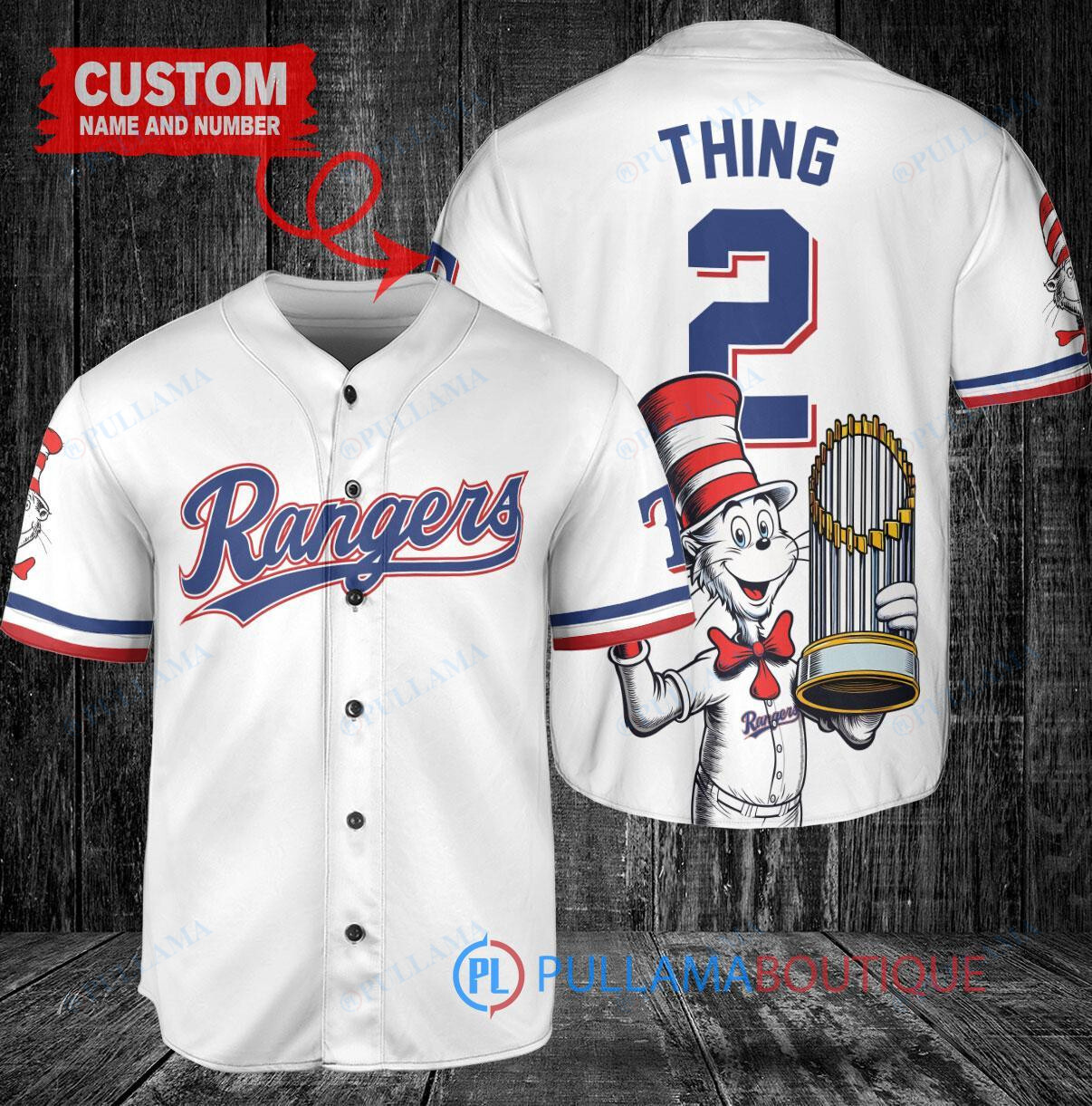 Texas Rangers x Dr Seuss with World Series Trophy Custom Baseball Jersey White
