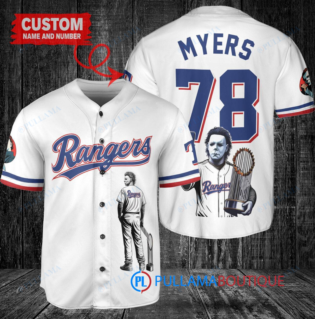 Texas Rangers x Halloween Michael Myers with Trophy Custom Baseball Jersey White